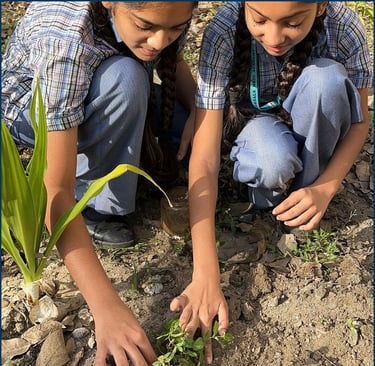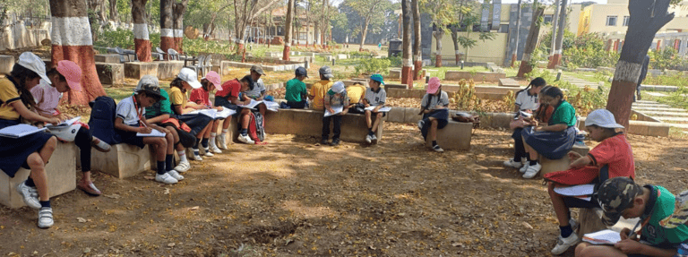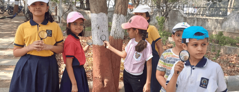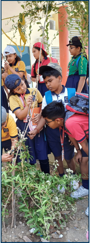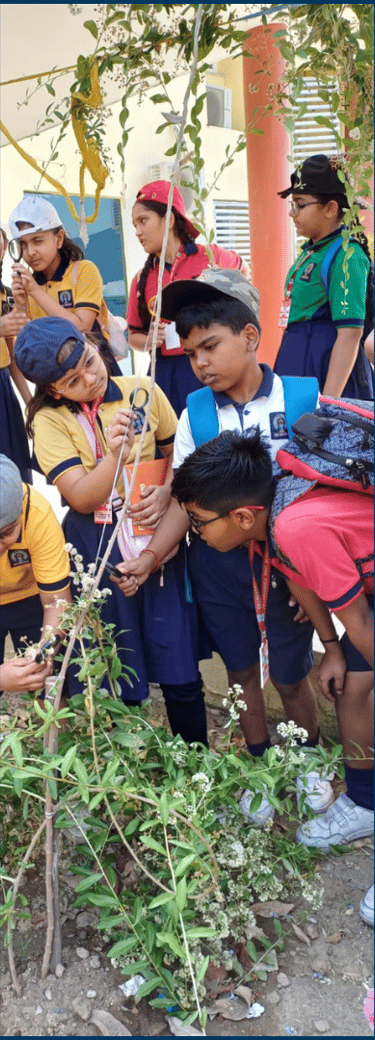 This hands-on learning experience gave students the opportunity to connect their classroom knowledge with the world around them. As they explored different areas of the campus, they observed and identified various plants, insects, birds, and small animals, discussing how each habitat supports diverse forms of life. Guided by their Science teacher, Ms. Swati Muley, the students closely examined the unique features of each natural setting, deepening their understanding of ecosystems in a fun and engaging way.