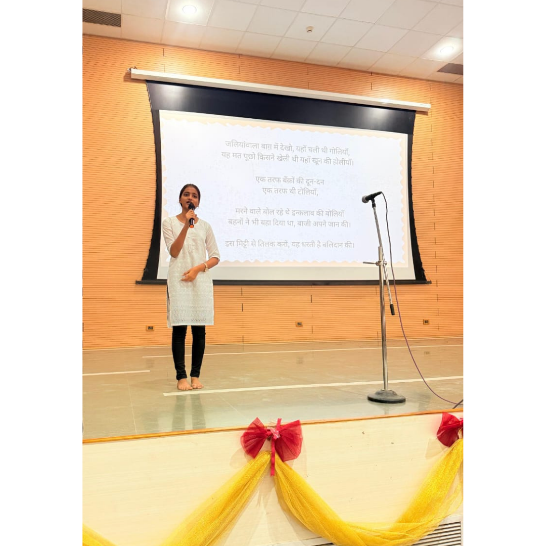 The latest updates were delivered during the News segment by Riddhi Goyal (XI Science), after which a poignant Hindi poem, rich in emotion and nationalism, was recited by Anushree Goswami (XI Commerce).