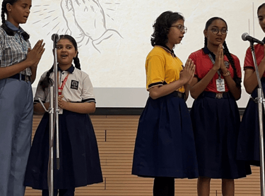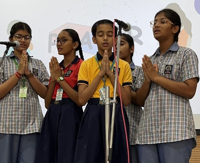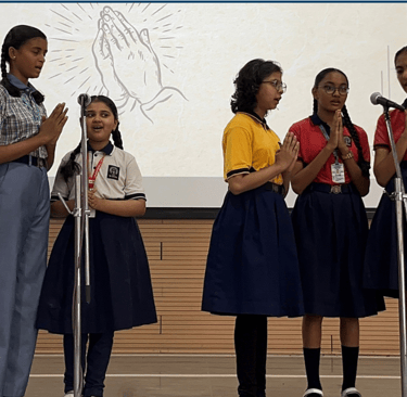 The programme commenced with a graceful introduction by the comperers, Riddhi and Aarav, who set the tone for the assembly. This was followed by a soulful prayer led by Vivaan, invoking divine blessings and peace