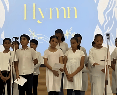 The audience was further uplifted by a melodious rendition of hymns that brought a peaceful and spiritual ambiance to the assembly. Adding a touch of interaction and engagement, Ananya and Anushree conducted a short yet impactful quiz on Good Friday, testing the students’ understanding of the day’s message and history.