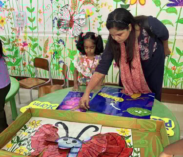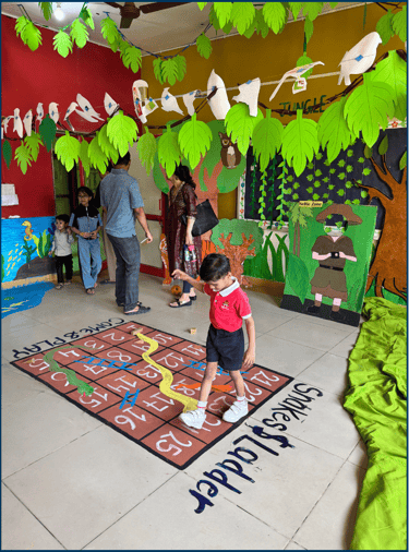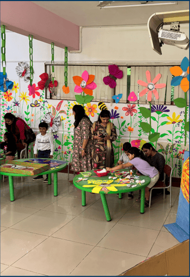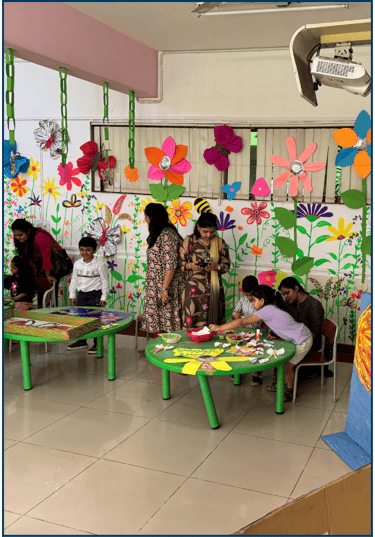 Children fluttered through the “Butterfly Bliss” area, joyfully symbolising their transformation and growth, while the “Circus Fun” corner echoed with giggles as children and parents played ring toss, juggled balloons, and spun wheels of fortune. The “Celestial Pioneers” section inspired budding scientists to build rockets and trace constellations, transporting everyone into a space-themed adventure. Meanwhile, the vibrant “Tarnetar Mela” brought a traditional flair, with mehendi designs, satodiyo games, jewellery making, and umbrella decoration blending culture with creativity in the most heartwarming way.