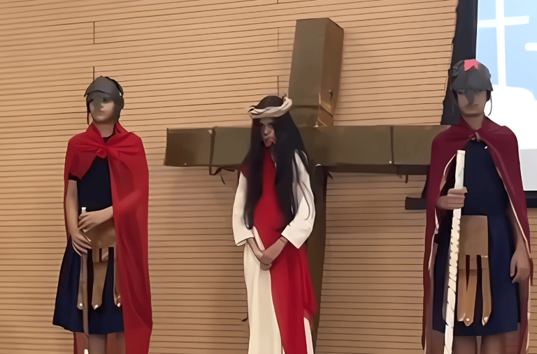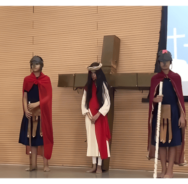 A heartfelt speech by Gloria beautifully articulated the meaning of Good Friday and the virtues it upholds, drawing parallels with Indian values of compassion and sacrifice. The highlight of the programme was a moving skit performed by the students of Grades 7 and 8, focused on the value of sacrifice and compassion. The theatrical performance was a blend of proscenium and participative theatre which made the audience spellbound.