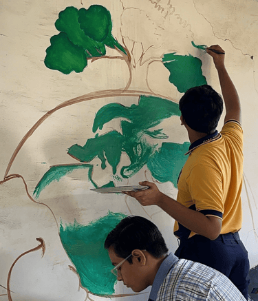 Classes IX and XI: The senior students used their artistic talents to create stunning wall murals that captured the beauty of Earth and the urgent need to protect it. Their murals stood as lasting tributes to Mother Nature.