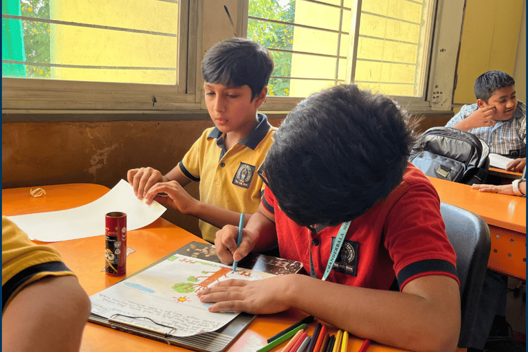 Classes V and VI: Through an Art Trail with Waste Material, these students transformed everyday waste into imaginative works of art, emphasizing the importance of reusing and recycling.