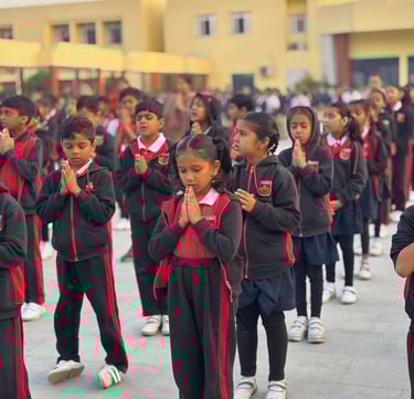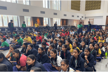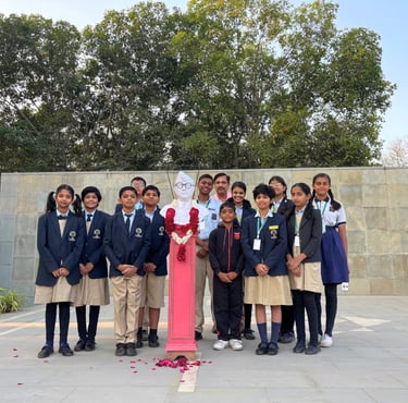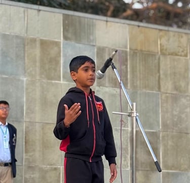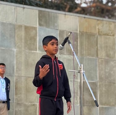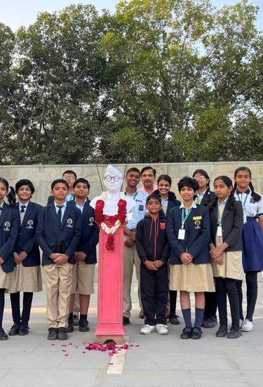 A motivational thought was shared by Reyansh Choudhary, which inspired all present to embody the same courage, determination, and selflessness that were the hallmarks of Netaji’s character. Rajvi Raulji from Class VII delivered a powerful speech, discussing the life and contributions of Netaji, focusing on his formation of the Indian National Army and his iconic call to arms, "Give me blood, and I will give you freedom." This speech further fuelled the assembly’s purpose of honouring Netaji’s bravery and selfless service to the nation.
