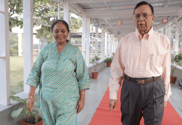 The celebrations proceeded with the auspicious Lighting of the Lamp ceremony, invoking the blessings of Goddess Saraswati for wisdom and enlightenment. The stage was graced by the esteemed presence of Chief Guest Dr. Kamala Kannan, Guest of Honour Ms. Ritu Dewan, Principal of Dayawati Modi Academy, and Special Guest A.M. Surana, Director of Finance at Gujarat Guardian Limited. Accompanying them were Principal Mr. Ramjee Nagarajan and Vice Principal Mrs. Rosy Mehta. The dignitaries were eloquently introduced by Mansi Piludaria and Gloria Biju and were formally welcomed with mementos as tokens of gratitude, adding a touch of elegance to the occasion.