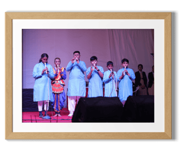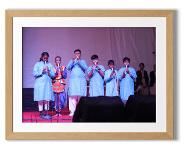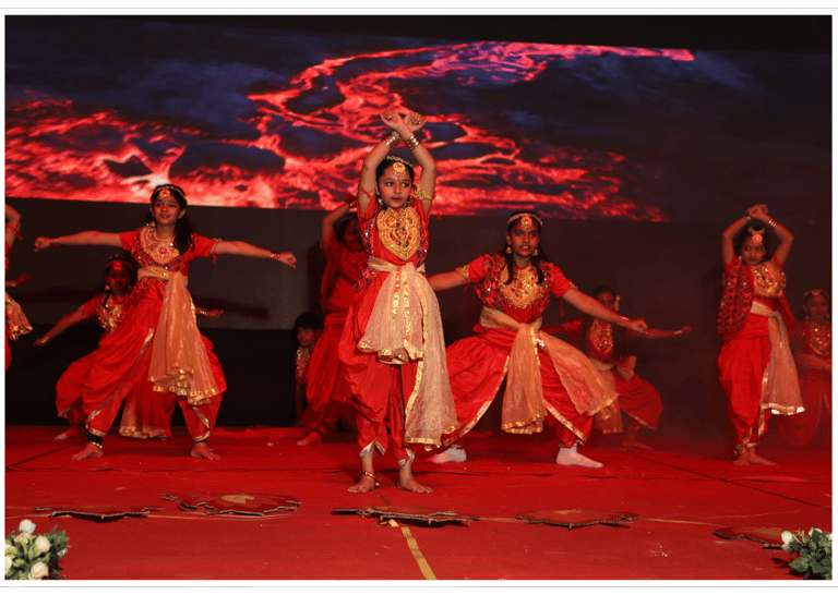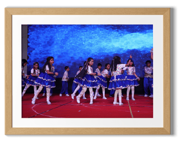 A vibrant cultural program followed, featuring captivating performances by budding talents from Nursery to Grade IV. The young performers brought the theme "Prakriti Vandana" to life through a beautiful fusion of dance, drama, and music. Each dance celebrated one of the five elements—Earth, Water, Air, Fire, and Sky—with graceful movements and vibrant energy, leading to a grand finale that left the audience in awe. The drama students powerfully highlighted the importance of conserving and protecting nature, delivering a poignant message that resonated deeply with all. The performances not only showcased the harmony of the elements but also inspired and moved everyone present.