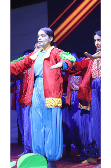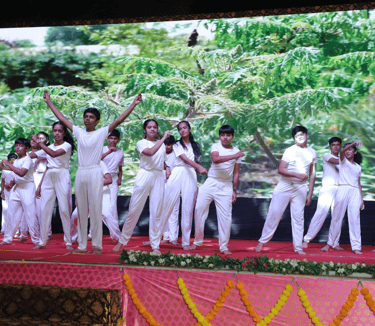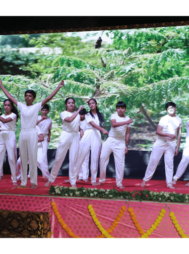A spectacular cultural program followed, featuring performances by budding talents from Grades V to XI. The young performers beautifully brought the theme "Prakriti Vandana" to life through a vibrant fusion of dance, drama, and music. Each dance portrayed one of the five elements—Earth, Water, Fire, Air, and Sky—with fluid movements and boundless energy, culminating in a grand finale that left the audience in awe. The drama students beautifully delivered a poignant message on the importance of conserving and protecting nature, leaving the audience deeply moved.