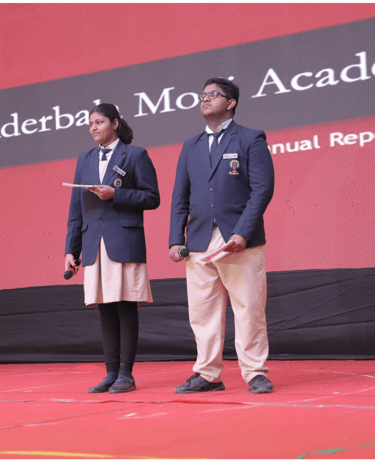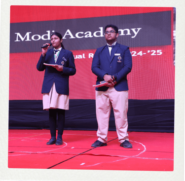 The Student Council, led by Head Boy Aryan Nair, Head Girl Gloria Biju, and council members Nidhi Bhandari and Tamana Mazumdar, proudly presented the Annual Report. Their presentation highlighted the school’s achievements, initiatives, and milestones over the past year, demonstrating the institution’s unwavering commitment to academic excellence and holistic development.