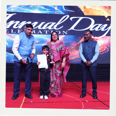 The pinnacle of the evening was the highly anticipated Annual Awards Ceremony, which recognized the remarkable achievements of students in academics, co-curricular activities, and sports. Chief Guest Dr. Kamala Kannan, Guest of Honour Mr. Gaurav Chandra, and Special Guests A.M. Surana and Amit Khatri presented the awards, as the achievers were celebrated for their hard work and dedication. The atmosphere was filled with pride as each student took the stage to be honored for their accomplishments.
