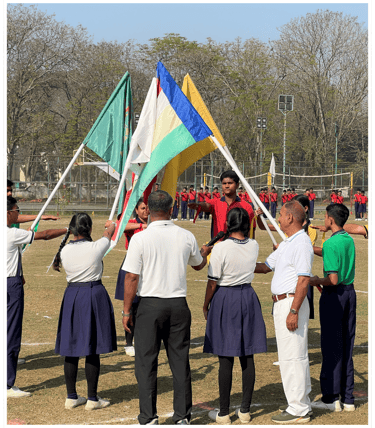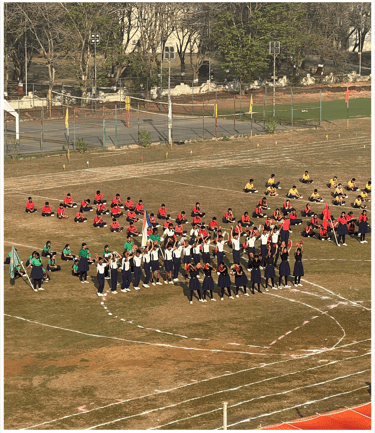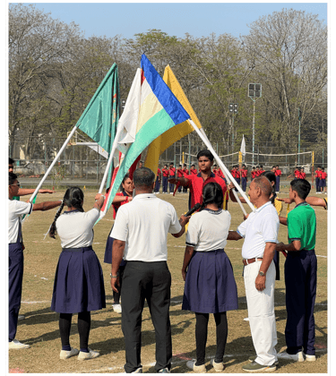 One of the highlights of the event was the synchronized Mass Drill and March Past, where the four school houses – Gandhi, Nehru, Raman, and Tagore – marched in perfect unity. The synchronized movements of the students, dressed in their house colours, showcased discipline and teamwork.