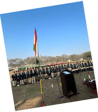 The ceremony, expertly anchored by Ariha Shah and Purbasa Majee, was followed by the national anthem and a heartfelt patriotic poem recited by Arnav Singh Gautam, which echoed the values of unity, sacrifice, and love for the nation. Dhruv Mani of Class VIII- A captivated the audience with an inspiring speech on the Indian Constitution, igniting a sense of responsibility and patriotism among the students.