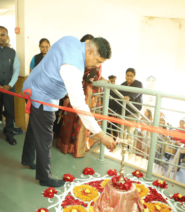 Following this, the auspicious Lighting of the Lamp ceremony invoked the blessings of Goddess Saraswati for wisdom and enlightenment. The ceremony was graced by distinguished guests, including Chief Guest Dr. Kamala Kannan, Guest of Honour Mr. Gaurav Chandra, Plant Head at Gujarat Guardian Limited, Special Guest A.M. Surana, Director of Finance at Gujarat Guardian Limited, and Mr. Amit Khatri, General Manager of Finance and Accounts at GGL. They were warmly welcomed by Principal Mr. Ramjee Nagarajan and Vice Principal Mrs. Rosy Mehta. The dignitaries were introduced by Aryan Nair and Gloria Biju, and presented with mementos as tokens of appreciation.