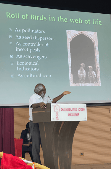 Mr. Guna's engaging presentation focused on “Endemic and Rare Birds of the Western Ghats.” He emphasized the significance of birds as pollinators, seed dispersers, and ecological indicators. The session featured stunning visuals and insightful discussions on various bird species, including the Nilgiri Wood Pigeon, Nilgiri Sholakili, endangered vultures, Malabar Whistling Thrush, Emerald Dove, Asian Paradise Flycatcher, Drongos, and many other rare bird species.