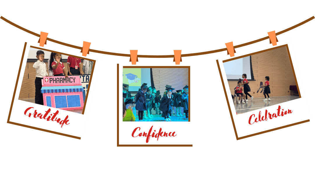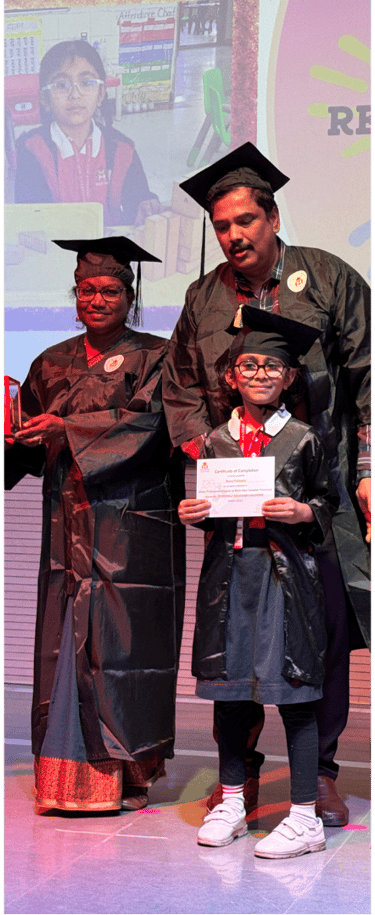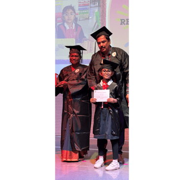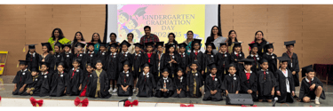 The ceremony commenced with a heartfelt welcome from the young graduates—Pirai Vyas, Siya Prajapati, Miraya Dhanajay, Aaradhya Nair, and Gulfatima Pathan—who gracefully anchored the event. This was followed by the auspicious lighting of the lamp by the esteemed guests, accompanied by the Principal and Coordinators, symbolizing the pursuit of knowledge and wisdom. The event beautifully captured the transformative journey of the young learners, highlighting their growth from curious toddlers to confident individuals ready to embark on their next academic adventure.