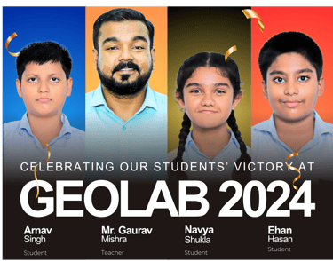 With great pride, we celebrate the outstanding achievement of our students—Mstr. Ehan Hasan, Ms. Navya Shukla, and Mstr. Arnav Singh Gautam—who, guided by the exemplary mentorship of Mr. Gaurav Mishra, emerged victorious in the prestigious GEOLAB 2024 Contest. Organized by the renowned Centre for Education Research in Geosciences (CERG), this esteemed competition highlights the exceptional skill, commitment, and perseverance of our remarkable team.