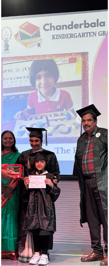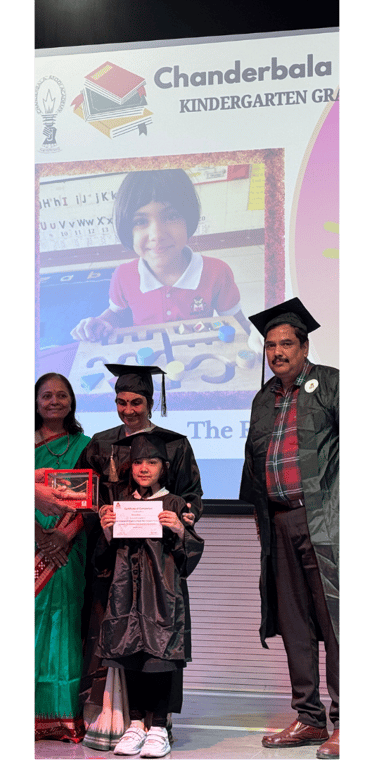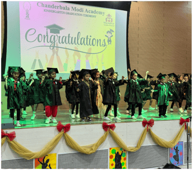 The grand celebration of Authenticity – Graduation Ceremony unfolded at Chanderbala Modi Academy, marking a significant milestone for our young graduates as they embarked on a new journey of learning. The event was graced by our esteemed Chief Guest, Ms. Mamta Pandya—granddaughter of the legendary educationist Shri Gijubhai Badheka—and Guest of Honour, Dr. Ambika Aiyadurai, a distinguished contemporary anthropologist. Their presence, along with our respected Principal, Mr. Ramjee Nagarajan, coordinators, teachers, proud parents, and enthusiastic young graduates, added immense joy and prestige to this memorable occasion.
