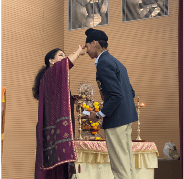 The ceremony began with a warm welcome from anchors Nidhi Bhandari and Vidhi Khatri, who highlighted the importance of the day. Principal Mr. Ramjee Nagarajan shared motivating words, urging students to stay focused, trust in their efforts, and have confidence in their abilities. He also presented a PPT outlining the changes the school has implemented for Grade XI in the upcoming session. The ceremony continued with a prayer session, invoking divine blessings for strength, wisdom, and success.