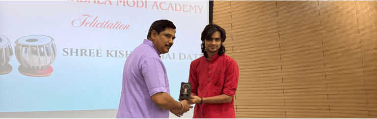 As a token of appreciation, our Principal felicitated Dr. Janki Mithaiwala with a shawl, acknowledging her remarkable contributions to the world of classical music. The felicitation ceremony also honoured Ms. Maitri Buch, the Coordinator of SPIC MACAY, along with talented harmonium player Mr. Akar Surti and tabla maestro Shri Nandkishor Date. In his address, Principal Sir spoke about the significance of the musical concert and praised Dr. Mithaiwala’s illustrious career.